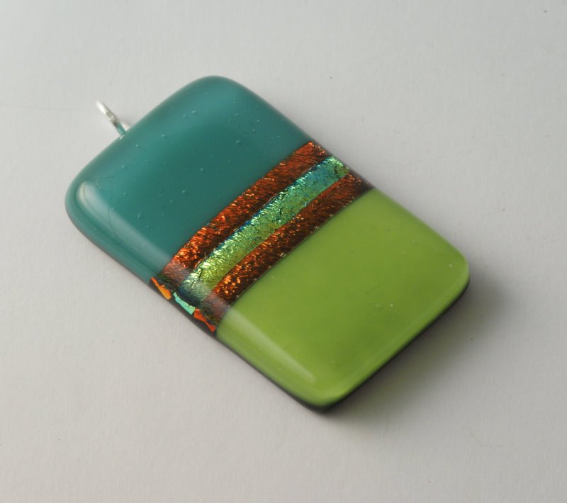 These two pendants both used pre-fired strips of Bullseye on black - the 20cm strips are available in either warm or cold dichroic colour and offer a useful source of thin strips of dichroic colour.
