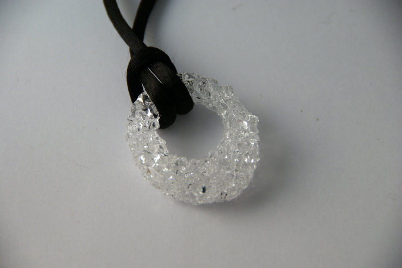 Richard made this pendant by first of all making a mould out of potter's plaster of paris mixed with silica. This was then filled with frit and the firing carefully watched. Once glass had tack fused, but not slumped, the temperature in the kiln was crashed to anneal temperature.
