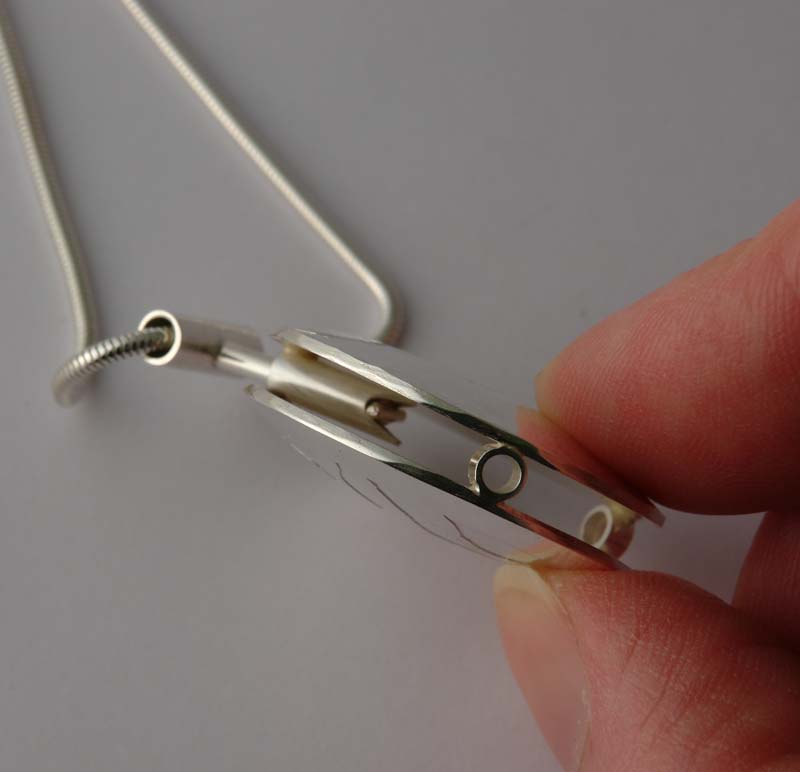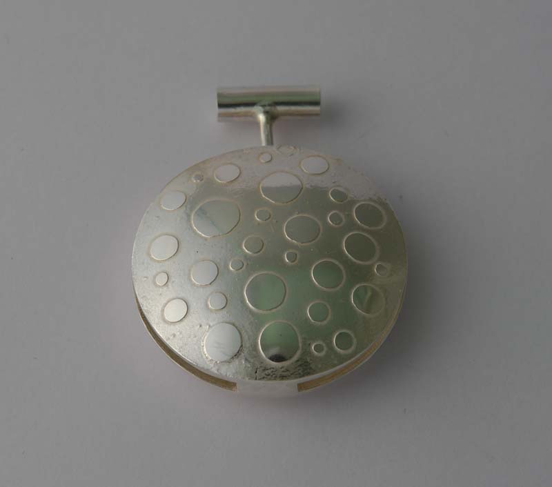 The making of these pendants was due to a conversation with a friend who wanted a way of knowing which breast was next in line at feeding time (I had assumed this was obvious, but evidently not). So we came up with a pendant which could be rotated about the vertical axis and with two differently tactile surfaces. Therefore after feeding off one breast, the pendant could be lifted and rotated to show the other side. At the next feed, the mother could touch the pendant and know from the feel, which breast to use first.